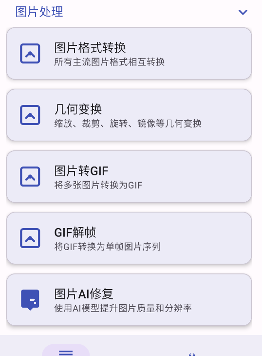 图片格式转换、几何(缩放、裁剪、旋转、镜像)变换、AI修复老旧照片、擦除物体等等。