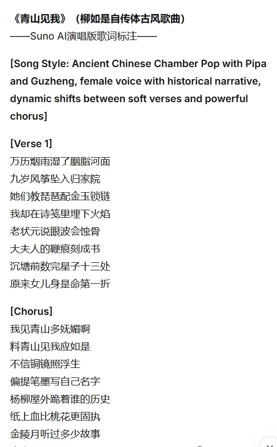 4、根据歌词,用AI生成素材 或 找影视片段混剪。这里有个重点,文案转歌词的AI提示词,必须加一句:“符合 Suno 规范,要带正确的Suno 标签。”
